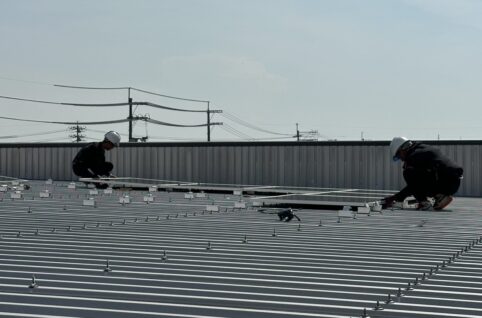 倉庫をお持ちの企業様、太陽光発電システム設置工事が始まりました。